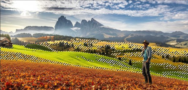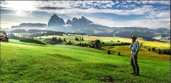 人物の光や影、色調が調整され、背景の世界に自然に馴染みました。まるで男性が最初からこの背景にいたかのようです。