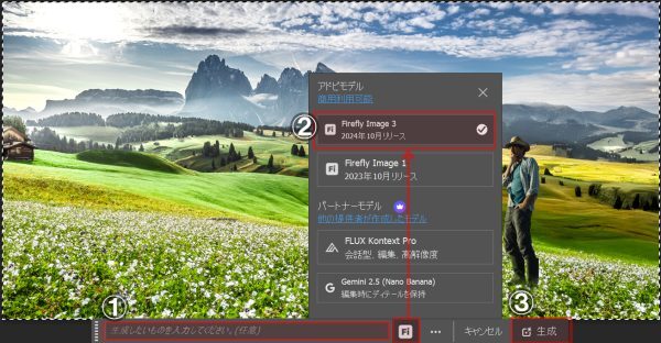 ①プロンプトを入力(例:小さめの花々をまばらに追加)