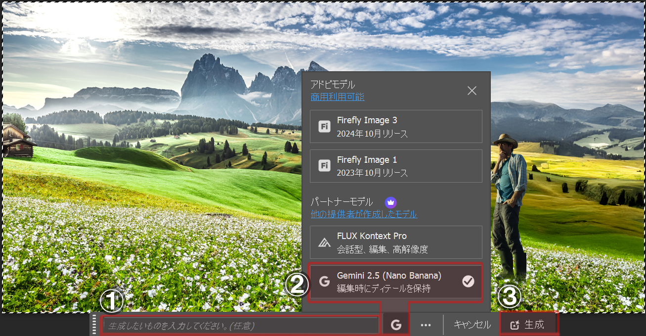 ②パートナーモデルGemini2.5(Nano Banana)を選択