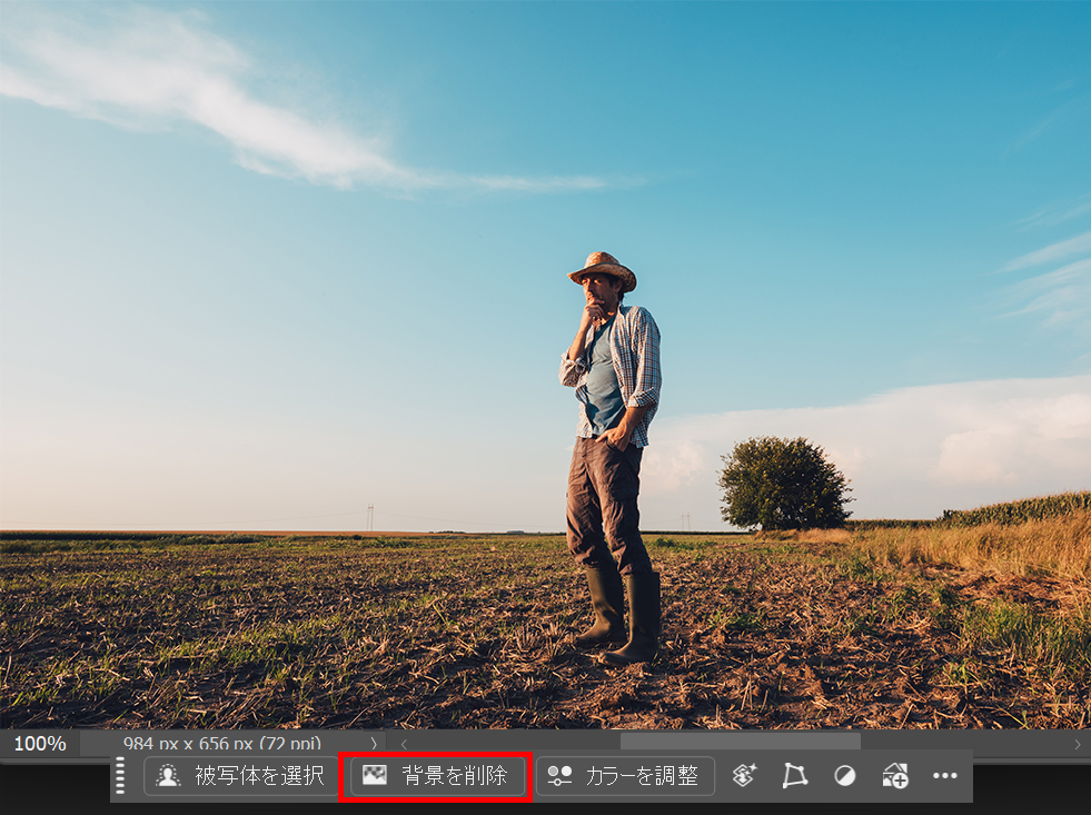 次に別の画像から用意した人物を元の画像に合成します。背景を削除を実行してください。
