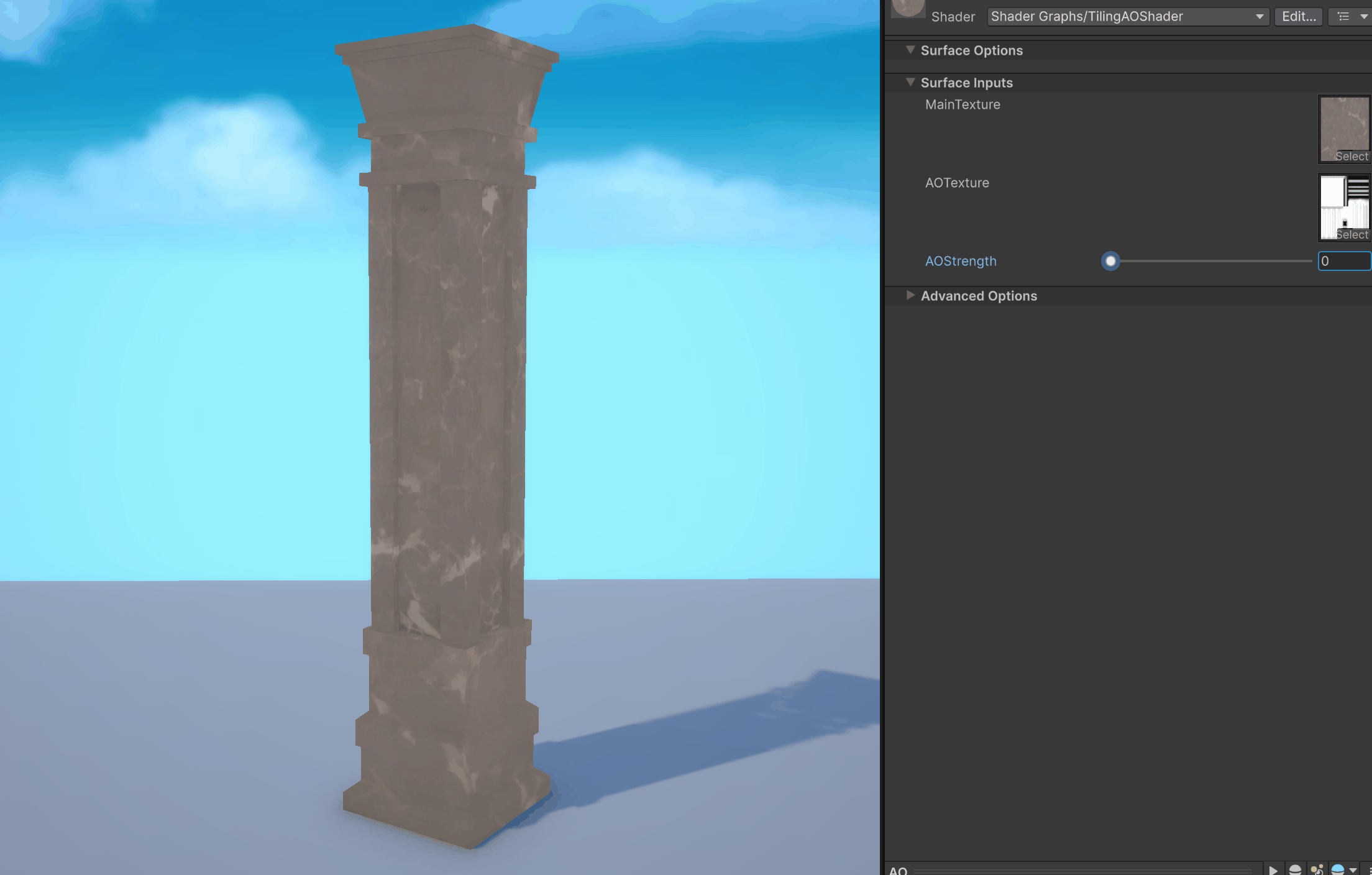 もうひとつLerpノードを使用し、今度はAOの影部分(黒)を任意のカラーに置き換わるようにしてみました。