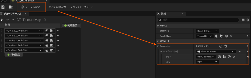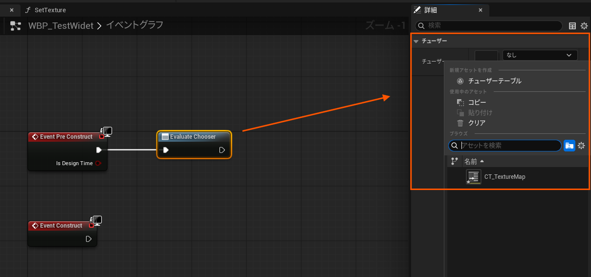 ChooserTableの時と同様にアセットを選択します。