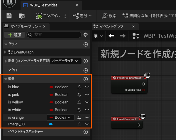 Texture設定用のImageウィジェットを作成、種類判別用のbool変数を定義しておきます。