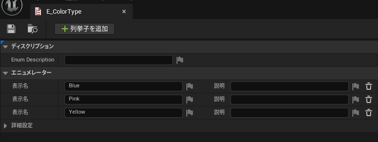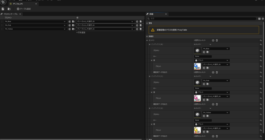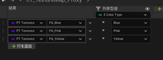 そして、各ProxyAssetと列挙子が紐づくように配置しておきます。