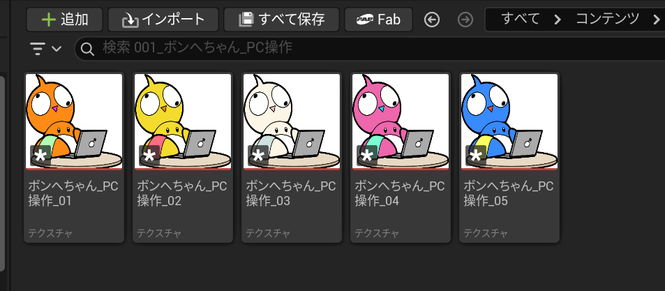 ↓作成したProxyAssetに紐づくような形で、テクスチャをそれぞれ割り当てました。