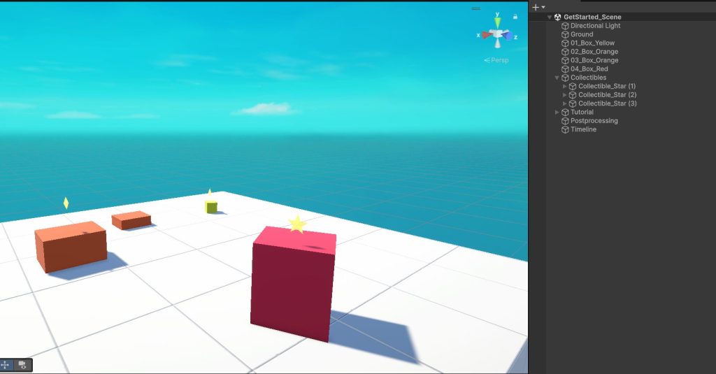 GetStarted_Sceneを開くとあらかじめこのようなステージが作成されています。