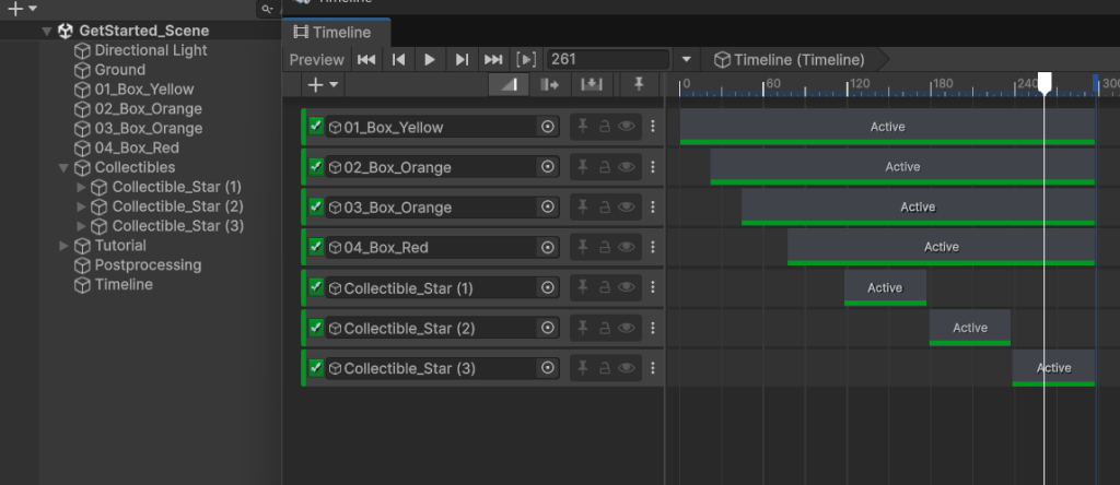 Unity公式が提供しているアニメーションやオブジェクトの操作を時間軸にまとめて制御するための機能で、タイミングの指定を視覚的に編集できるようになっています。