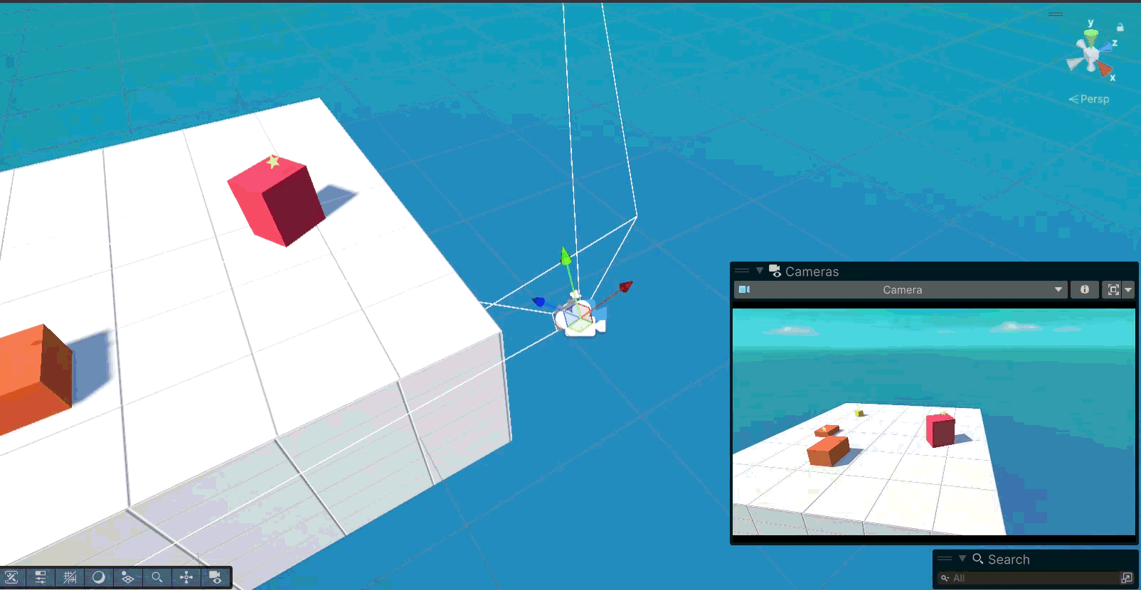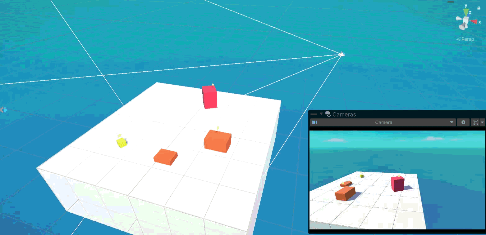 SceneViewでドラッグして動かしてみるとカメラもそれに合わせて動くようになっています。
